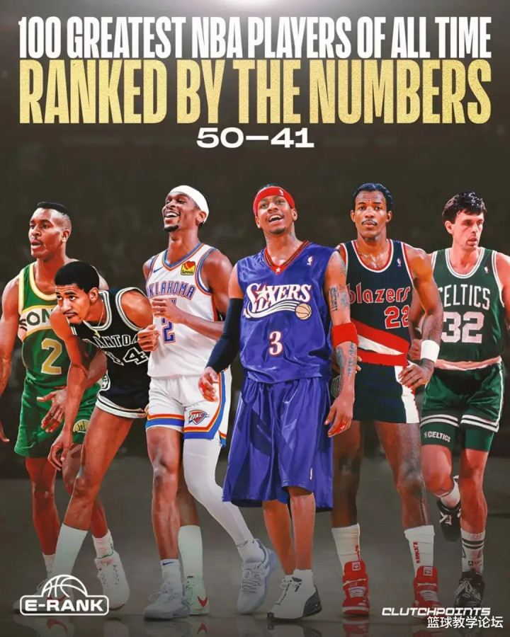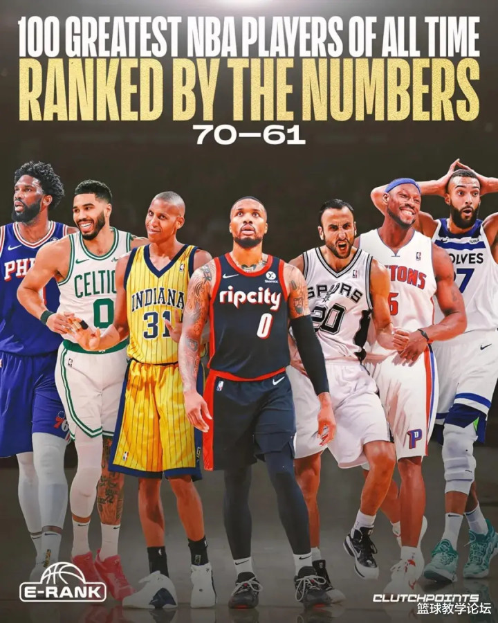 NBA media Clutch Points reporter Josh Eberley used the "E-Rank" calculation formula created to select the top 100 NBA historical stars. E-Rank is an algorithm system that evaluates NBA players' field achievements through quantitative indicators, covering career data, peak performance, league awards and important winning abilities.. 100, Chris Webber—271.85 points 99, Marc Gasol—272.95 points 98, Kyle Lowry—275.2 points 97, Al Horford—276.95 points 96, Archibald—285.5 points(75 members) 95, Text Scarter—287.315 points 94, Jerry Lucas—289.5 points (75 members) 93, Amare Stoudemire—292.45 points 92, Horace Grant—293.7 points 91, Grant Hill—300.25 points 90, Chris Bosh 303.7 points 89, Dennis Rodman 304.2 points (75 members) 88, Cameron Anthony 306.95 points (75 members) 87, Bill Walton 313.35 points (75 members) 86, Sydney Montclave 319.95 points 85, Alonzo Mooning 323.25 points 84, Hal Greer 325.15 points (75 members) 83, Dave Coins 331.15 points (75 members) 82, Adrian Dantley 331.9 points 81, Jimmy Butler 333.2 points 80, Bill Schalman 333.7 points (75 members) 79, Dominic Wilkins 334.15 points (75 members) 78, Wes Unseld 334.65 points (75 members) 77, Draymond Green 336.2 points 76, Kyrie Irving 339.4 points 75, Paul George 345.12 points 74, Luca Doncic 346.205 points 73, Deakinbe Mutombo 347.2 points 72, James Wosi 348.2 points (75 members) 71, Bob McAdu 348.305 points (75 members) 70, Sam Jones 349.25 (75 members) 69, Paul Alikin 362.5 (75 members) 68, Robert Parrish 364.5 (75 members) 67, Damian Lillard 365 (75 members) 66, Ben Wallace 369.85 65, Reggie Miller 369.9 (75 members) 64, Rudy Gobert 376.05 63, Tatum 379.25 62, Manu Ginobili 384.9 61, Joel Embiid 386.55 60, Erwin Hayes 386.6 (75 members) 59, Billups 387.6 58, McGrady 387.65 57, Tony Parker 390.815 56, Patrick Ewing 392.2 (75 members) 55, Ray Allen 393.35 (75 members) 54, Paul Gasol 400.35 53, Elgin Belle 403.5 (75 members) 52, George McCann 414.15 (75 members) 51, Pierce 415.7 (75 members) 50, McHale 419.6 (75 members) 49, Clyde Drexler 423.8 (75 members) 48, Shay Gilgers-Alexander 429.5 47, Willis Reed 438.45 (75 members) 46, Iverson 446.6 (75 members) 45, Walter Fraser 448.025 (75 members) 44, Artis Gilmore 453.25 43, George Gerwen 453.45 (75 members) 42, Dolf Shayce 464.4 (75 members) 41, Gary Payton 479.35 (75 members) 40, Isaiah Thomas - 481.75 points (75 members) 39, Anthony Davis - 482.45 points (75 members) 38, Westbrook - 486.55 points (75 members) 37, Steve Nash - 503.75 points (75 members) 36, Jason Kidd - 512.2 points (7 5 major members) 35, Dwight Howard - 517.85 points 34, Bob Cousey - 530.35 points (75 major members) 33, Rick Barry - 549.35 points (75 major members) 32, Havlicek - 573.65 points (75 major members) 31, Scotty Pippen - 589.35 points (75 major members) 30, Barkley 603.6 points (75 members) 29, Bob Pettit 609.4 points (75 members) 28, James Harden 624.65 (75 members) 27, Stockton 626.45 points (75 members) 26, Leonard 628.84 points (75 members) 25, Wade 631.15 points (75 members) 24, Moses Malone 653.05 points (75 members) 23, Paul 657.8 points (75 members) 22, Robertson 664.45 points (75 members) 21, Jokic 670.35 points 20, Jerry West 684.5 (75 members) 19, David Robinson 701.45 (75 members) 18, Antetokounmpo 708.2 (75 members) 17, Nowitzki 734.05 (75 members) 16, Garnett 746.3 (75 members) 15, Carl Malone 789.5 (75 members) 14, Olajuwon 823.7 (75 members) 13, Curry 844.86 (75 members) 12, Durant 867.17 (75 members) 11, Julius Irving 893.95 (75 members) 10, Larry Bird 899.6 (75 members) 9, Chamberlain 922.75 (75 members) 8, O'Neal 1008.6 (75 members) 7, Kobe 1034.52 (75 members) 6, Magic Johnson 1056.93 (75 members) 5, Bill Russell 1086.75 (75 members) 4, Duncan 1122.3 (75 members) 3, Jabbar 1380.5 (75 members) 2. James 1512.17 (75 members) 1. Jordan 1546.21 (75 members) Who do you think is higher and who is lower?