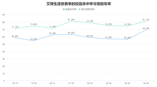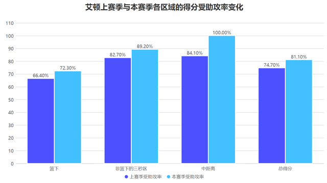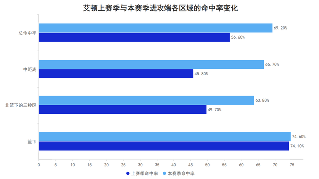 The Lakers introduced former No. 1 pick Ayton during the offseason. Ayton was often questioned due to his playing style and other reasons, but after joining the Lakers, he performed very efficiently and achieved a win-win situation with the Lakers. This column will help you understand through in-depth data analysis. In the game against the Pelicans, Ayton scored 20 points and 16 rebounds. The most exaggerated thing is that he hit 10 goals in 11 shots. This kind of scoring output and efficiency are extremely excellent in the team, and he scored 20+15 with a 90% shooting rate, becoming the first person in the history of the Lakers since O'Neal in 2002. Of course, some people question that the opponent in this battle, the Pelicans, is just a weak team in the Western Conference and has a very low defensive level. However, from this season, Ayton averaged 15.9 points per game and shot 69.2% from the field. Among players who averaged more than 10 shots per game, Ayton's field goal percentage ranks first in the league and is even higher than Jokic. This means that he has both scoring production and efficiency in general and does not only perform well against weak teams. This can also be reflected from Ayton's performance in each game this season. In the 12 games he played, he did not shoot below 50% in any game, and even reached 70% in 6 games. There is no doubt that Ayton has been further activated this season, and this is also closely related to his new teammates. This season, Ayton took the most shots per game after receiving a pass from Reeves, and his field goal percentage reached 63.3%. He took the second most shots after receiving a pass from Doncic, and his field goal percentage was as high as 73.1%. When Ayton received passes from Lakers teammates and averaged at least 0.4 shots per game, he never shot below 50%. In the Lakers system, almost everyone can send him comfortable passes to make his shots efficient. This comfort is reflected in all aspects of the offensive end. Ayton has not made a three-pointer this season, and the assist rate for scoring at the basket, in the three-second zone outside the basket, and in the mid-range has significantly improved. This means that throughout the three-point line, Ayton has more passes to complete in various areas, reducing the number of single shots that he takes the ball on his own. This has also improved Ayton's shooting percentages in various areas compared to last season, especially in the non-basket three-second area and mid-range area. His shooting percentages have increased from 49.7% and 45.8% respectively. It increased by 63.8% and 66.7%. This improvement can be described as a qualitative change. He reduced independent singles within the entire three-point line and increased his attempts to receive passes from teammates and achieve higher scoring efficiency. After joining the Lakers this season, Ayton can be said to be eating his cake and eating it. Last season, the Lakers had a great need for players at the center position. While Ayton joined the Lakers to strengthen the inside, he also perfectly integrated into the offensive system and performed more efficiently. Although he has His scoring average per game is not the highest in his career, but his assist rate and field goal percentage this season are among the best in his career. His Lakers teammates created opportunities for him and he seized them with his excellent finishing ability. The two sides truly achieved a win-win situation.