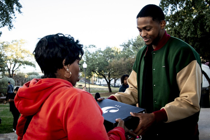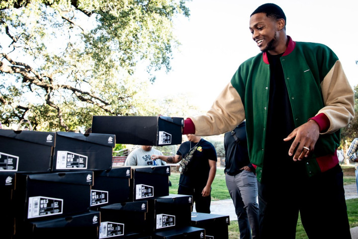 Spurs: @swipathefox appears at impromptu game and gives away 50 pairs of new shoes