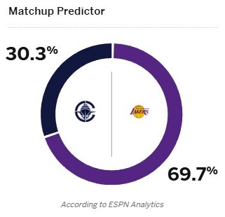 The current situation is very different! ESPN predicts the winning rate of tomorrow s Los Angeles Derby: Clippers only 30.3%, Lakers 69.7%