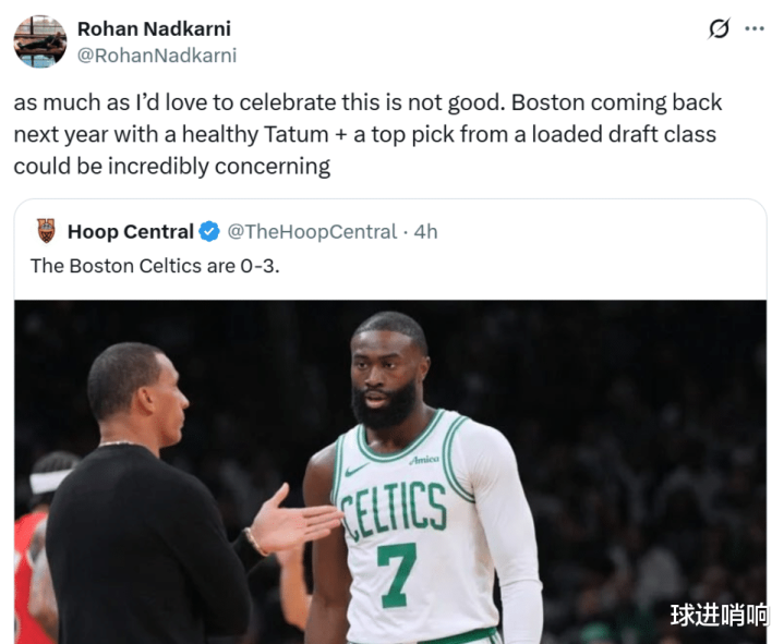 At the beginning of the season, they suffered a series of comebacks and suffered three consecutive defeats. It was the first time in 13 years that they faced such a predicament! Jaylen Brown scored 41 points with full firepower but still could not prevent the team from losing. The Celtics should recognize three realities. After losing 17 points to reverse three consecutive losses After losing to the 76ers and Knicks in the first two games, the Celtics faced the Pistons, another strong team in the East, in Game 3. With a lead of up to 17 points, the Celtics finally lost to the Pistons 113-119 and suffered a three-game losing streak to start the season. It is worth mentioning that this is the first time since 2013 that the Celtics have suffered three consecutive losses at the beginning of the season. The last time they lost three consecutive games at the beginning of the season, the Celtics only scored 25 wins and 57 losses that season and missed the playoffs. Jaylen Brown scored 41 points in the air Faced with the team's 17-point reversal, Jaylen Brown tried his best to use all his firepower in the game. Not only did he hit 5 of 9 three-pointers and fired from the outside, but he also continued to attack the inside with explosives, completely regardless of his personal image. After the hairline powder rubbed onto the Knicks Anunoby's chest in the previous game, it rubbed against the opponent Holland again in this game, and the latter had obvious marks on his shoulder. With such a dedicated performance, Jaylen Brown scored a game-high 41 points, and also got 6 rebounds and 4 assists. It was helpless to prevent the team from losing. The Celtics should also recognize three realities. Reality 1: Tatum is too important Due to Tatum's non-competitive style of play and his performance in losing the FMVP, he has been underestimated by the outside world in the past few years, even after winning the championship. But the reality is that Tatum is the absolute core and irreplaceable role of the Celtics. He plays the role of checking for gaps in the system, allowing other players around him to focus on the part that they are good at. Therefore, when Tatum returns healthy will also determine when this Celtics team can return to the ranks of contenders. Chris Hayne, a famous reporter, previously revealed on the show that Tatum will return this season. Chris Hayne said that Tatum sent him a text message, saying that he trained three times a week for 45 minutes each time and that his personal condition was very good. He also sent a dunk video. When he asked him whether he would return this season, Tatum said that his efforts to recover were not in vain. Chris Hayne believed that Tatum would return at some point in the regular season. Reality 2: The Celtics lack depth After offseason adjustments, with Holiday, Tatum and other players leaving the team, the Celtics lack lineup depth, especially in terms of interior reserves. The Celtics can only field centers of Keita's level. This allowed Pistons insider Jaylen Duren to get everything he wanted in the paint, scoring a double-double with 24 points and 18 rebounds. Osar Thompson also continuously hit the paint and scored 21 points and 12 rebounds. On the other hand, the Celtics can only rely on Jaylen Brown. Pritchard and White's performance after taking on larger roles was also lower than expected. Reality 3: Adhere to the "transition year" strategy It is not difficult to see from the successive release of Jrue Holiday, Horford, Kornet and other immediate combat capabilities during the offseason. Against the backdrop of Tatum's serious injury, the Celtics have strategically given up on this season and regard the new season as a "transition year." According to the team's lineup configuration and competitiveness, the Celtics should also adhere to this strategy. While actively playing bad games, they should increase the training of young players and properly protect the immediate combat effectiveness of veterans. At the same time, they must not rush to let Tatum return. As long as they persist through this difficult stage, the Celtics will reap rewards next season. As the famous reporter Rohan Nadkarni said, the Celtics will welcome back a healthy Tatum next season. Coupled with the high picks in the draft, this combination will be very scary.
