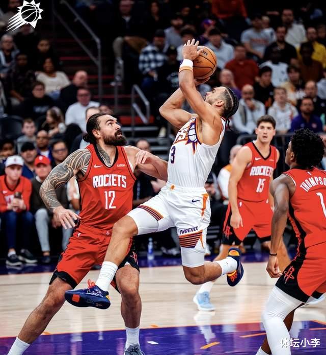 On November 25, the NBA regular season continued, and the Rockets challenged the Suns away from home. Durant was absent in this game, and the two teams were involved in a tug-of-war, but the Rockets blossomed inside and outside afterwards. Holiday, who came on the bench, hit three consecutive three-pointers to help the team take the initiative and take a 7-point lead in the first quarter. The Rockets once established a 13-point lead in the second quarter, but the Suns then launched a counterattack to narrow the gap. Fortunately, Smith hit a three-pointer and led the Suns 59-50 at halftime. For this game, the Rockets' starting lineup was passively adjusted. Sheppard started for the first time in the season, and the other four players were Amen, Okogie, Smith and Shen Jing. The two teams fell into a tug-of-war. Booker hit a three-pointer, and the Rockets scored consecutive points. Shen Jing hit a three-pointer, and Amen scored from the basket. The Rockets took a 15-12 lead in the first timeout. Booker hit a three-pointer to equalize, Holiday also scored a three-pointer, Booker scored a single point, and the Suns caught up with the score. Amen cut and dunked, Adams made a tip-in, Gillespie hit a three-pointer, but Holiday then hit two consecutive three-pointers to help the Rockets take the initiative and lead the Suns 30-23 in the first quarter. In the second quarter, Davison also scored a three-pointer. Gillespie stopped the bleeding with a jumper. Smith scored 2+1 to take a double-digit lead. After that, O'Neal hit a three-pointer to stop the bleeding, and the Suns scored consecutive points to close the point difference. But then Holiday hit a three-pointer, Sheppard completed steals one after another, and the Rockets once again widened the point difference and stopped the Suns. Then Dillon knocked down Adams under the basket, but the referee's replay did not upgrade. After that, the Rockets once took a 13-point lead, but the Suns once again made efforts to chase points. Fortunately, Smith hit a three-pointer and Amen broke through and scored to help the team stabilize the situation. The Suns led the Suns 59-50 at halftime. Without Durant, the Rockets performed well in the first half. Three players scored in double figures. Amen scored 12 points, 3 rebounds and 5 assists. Shen Jing scored 10 points. Shepard scored 4 points and 4 assists on 1 of 6 starts. There was a surprise player on the bench. Holiday scored 12 points on 4 of 7 three-pointers. The Suns' Dillon faced his old team and scored 13 points on 5-of-12 shots; Gillespie scored 13 points.
