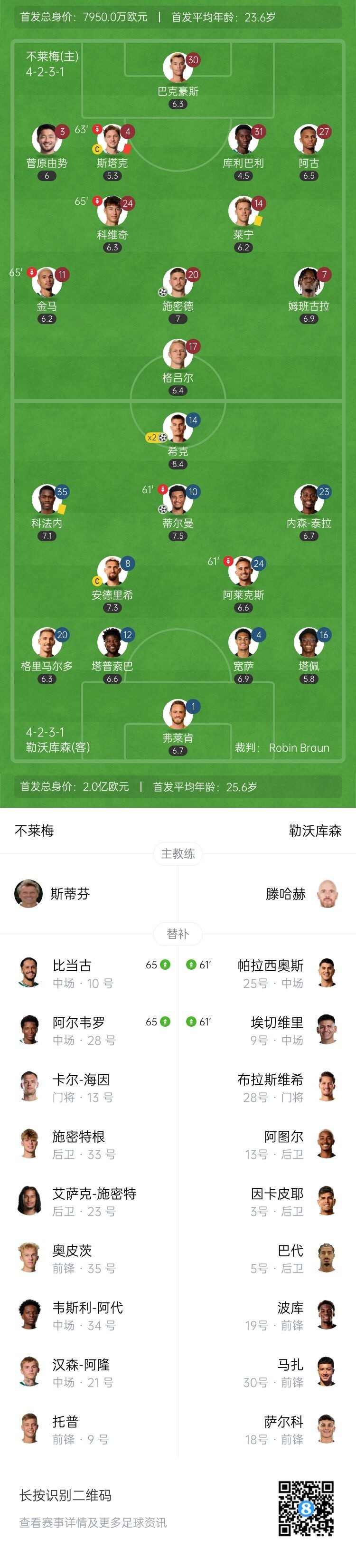August 30th, at 21:30 pm on August 30, in the second round of the Bundesliga, Bremen played against Leverkusen at Wesser Stadium. In the first half, Terra assisted Sick to score, Tilman won another goal, and Mbangula made a point Schmid made a hit. In the second half, Stark was red and gave a point, Hick shot, Fleken gave a gift, Schmidt scored a goal, and Kulibaly tied in 94 minutes. The game ended, Bremen 3-3 Leverkusen. [Key Event of the Game] In the 5th minute, Terra used her speed to compete for the ball and passed the triangle, and Sick pushed the shot and hit a steadily! 1-0! Leverkusen got a fantastic start away! ↓ In the 35th minute, the pharmaceutical factory made a cross and landed in Tilman's area. After unloading the ball, he calmly shot and hit the post and completed the goal! 2-0! Leverkusen wins another game! ↓ In the 41st minute, Mbangula fell to the ground in the opponent's penalty area. The referee gave a penalty kick after VAR intervened! Schmid took the penalty and deceived Fleken into a steady hit! 1-2! Bremen recovered one goal! ↓ In the 63rd minute, Kofane attacked Huanglong and Stark put a shovel in the penalty area and ate the red dot set meal! Sick's penalty kick was freely made! 3-1! Hick scored twice! ↓ In the 76th minute, Fleken made a mistake in the attack and did not touch the ball. Schmidt easily sent the ball in the face of an empty goalkeeper! 2-3! Bremen, who played one less, recovered one goal! ↓ In the 94th minute, Bremen launched a bombardment in the last attack, and Kulibali shot through the near corner! 3-3! Ten people Bremen tied at the last moment! ↓ [Focus moment of the game] In the 13th minute, Golden Horse shot a shot in the penalty area, and the ball failed to hit the target↓ In the 18th minute, Gruel made a long shot after stealing in the frontcourt, and the ball missed the baseline. ↓ In the 23rd minute, Leverkusen conducted continuous transmissions in the opponent's penalty area, and Alex Garcia shot and fired anti-aircraft guns. ↓ In the 45th minute, Kofane went to the meeting alone, but his shot hit the crossbar and the pharmaceutical factory almost scored a goal. ↓ In the 5th minute of stoppage time in the first half, Grimaldo's free kick hit the wall and flew out of the baseline. ↓ In the 8th minute of stoppage time in the first half, Gruel's free kick seemed to pass and shot was quite threatening, and Fleken reacted quickly and stretched out his feet to destroy the ball. ↓ In the 68th minute, Fleken made a mistake in making a big mistake, and his opponent's shot failed to seize the opportunity. ↓ In the 83rd minute, Sugawara Yushi suddenly made a cold arrow on the outside, and Fleken lost the ball and made his players sweat in a cold sweat. ↓ Injury time for 5 minutes. At the end of the game, Bremen 3-3 Leverkusen. [First and substitute information between both sides]