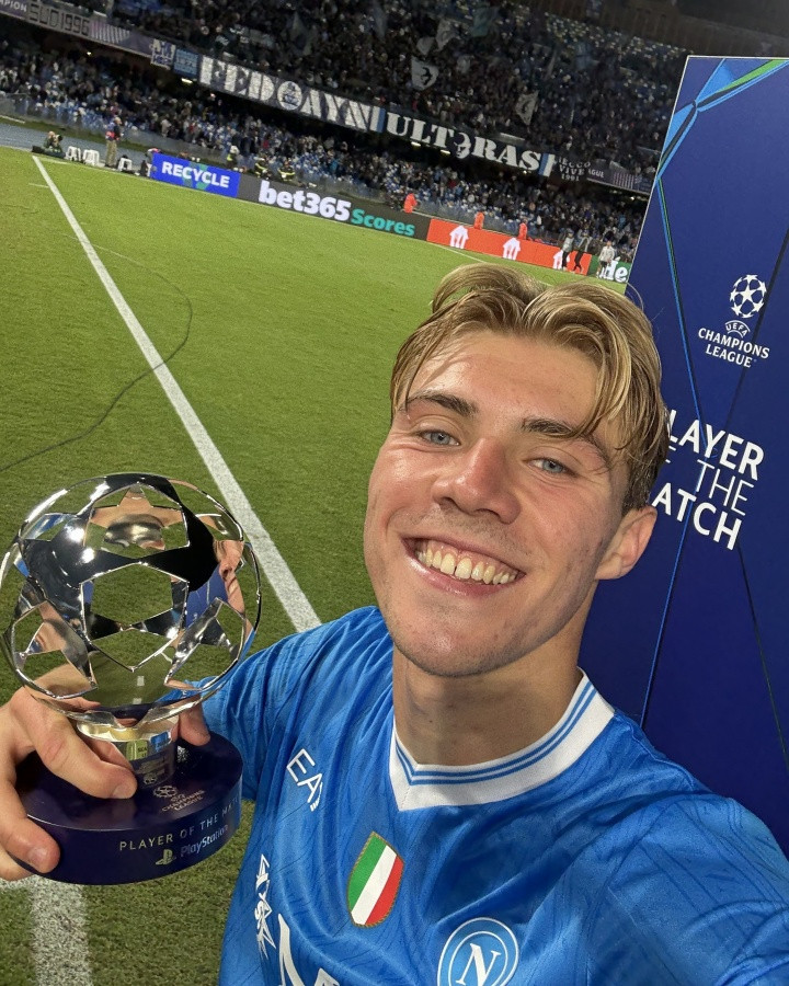 October 2-1 Portuguese Sports in this round of Champions League, Hoylen scored twice, and was rated as the best in the game after the game! After the game, the Champions League official posted a selfie of Hoylen and the MVP trophy.