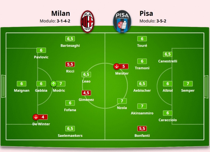 October 25th: AC Milan drew 2-2 with Pisa. After the game, Mi Sports rated the performance of the Milan coach. 5.5-AC Milan not only failed to expand its advantage to 4 points, but almost suffered its second defeat against the newly promoted team at home. 6-Maignan made an early side dive when saving a penalty kick, resulting in a loss of points. Facing Nzola alone, he lost another goal. In addition, he hit several high-altitude balls and encouraged his teammates many times. 4- Derwent replaced Tomori, his position was slightly hesitant. The handball foul that resulted in a penalty seemed inexperienced. 6-Gabia , as the core of the three central defenders, performed well in the header battle with Meister and always stayed awake. A dangerous clearance and the rest of the defensive interceptions were in place. 6-Pavlovich has improved defensive stability and dares to move forward to create threats on the offensive end. But there was also a defensive misalignment when Nzola scored. 7-Modric is worth the price alone. It has unique vertical penetration capabilities and has made outstanding contributions in the counter-attack phase. 6.5-Salem Marcos effectively widens the width of the right wing and attempts a one-on-one breakthrough and cross. Although the accuracy was unstable, a heavy shot hit the door frame and almost tied 2-1. In stoppage time, the chance to win 3-2 was missed. 6-Fofana strengthens the midfield, decisively participates in confrontations and balances offense and defense. In the second half, he was more active going forward and provided a wonderful back-heel assist for Leo. 5.5-Richie and Modric rotate to organize and advance forward. After being on the bench, he is gradually regaining his confidence and there is still room for improvement. 6.5-Batesagi replaced Estupinan and showed his general style. He is strong and has excellent passing skills. Jean Toure struggled repeatedly and continued to create offensive threats on the left. 4.5-Jimenez serves as the fulcrum of the striker. His running intention is acceptable but he improperly handles the ball many times, continuing his Serie A goal drought. 6.5-Leo scored his third goal in the past two games, scoring consecutive goals for the first time since April 2024. He committed repeated fouls, dribbled past opponents, and hit the crossbar in a perfect position. 5-Nkunku came on as substitute center for 15 minutes and added extra time, wasting a good opportunity and then disappeared. The physical condition is not at its best and it is very obvious. 6-Atkame made consecutive mistakes in the early days when he was on the left: receiving a yellow card, making errors in passing and receiving, and being offside when scoring the 2-1 goal. But scored the key equalizer. 5.5-Allegri Even though the team was leading, he was still furious due to lack of intensity and technical mistakes. He sensed a crisis, but the team members failed to detect it. He left the field angrily after the game.