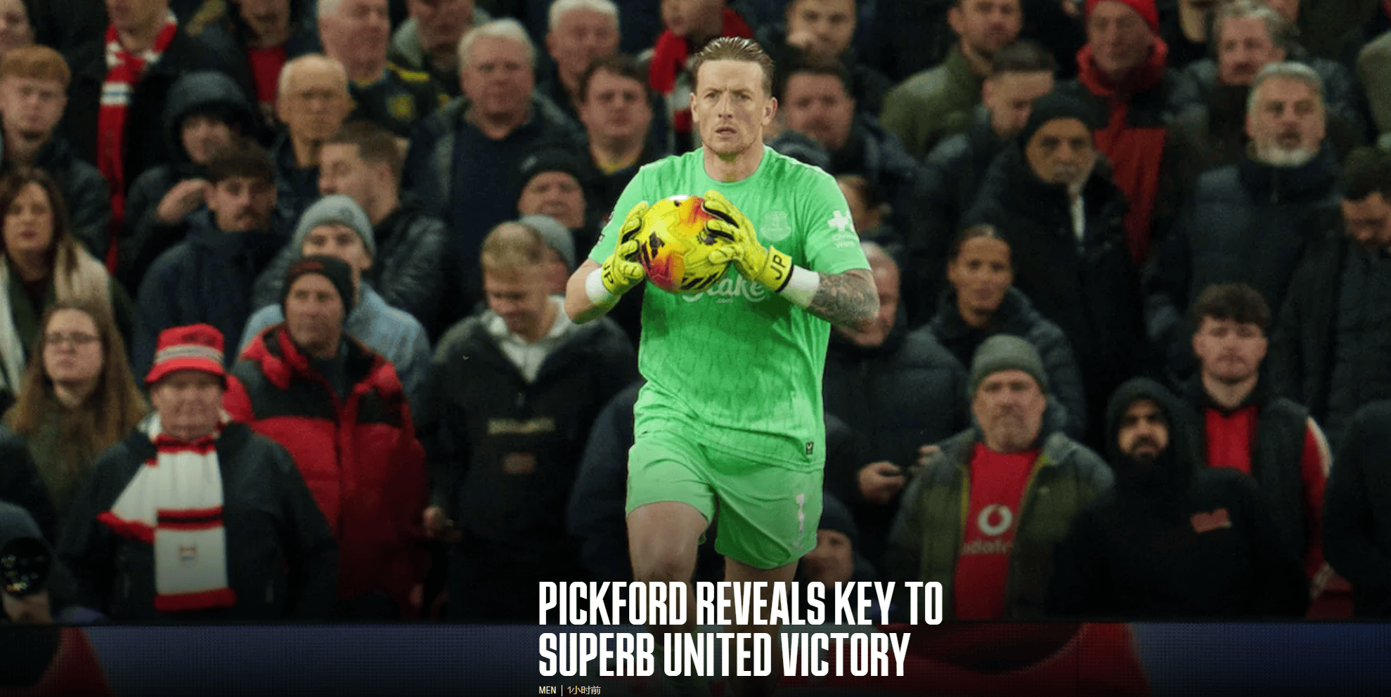 Hupu, November 25th: Pickford believes that Everton is "moving in the right direction" and called on Blue Moon to continue to maintain its good momentum after defeating Manchester United 1-0 away from home with a tenacious and outstanding performance. "It's a huge win and it's not easy to come here and win - I think this is my first win here as a player - so it feels great. It feels really good to persevere and get a result like this. I didn't see it at first, but Idrissa apologized afterwards and it went away. We are focused on winning and not getting hung up on little things like this - we are focused on winning and enjoying the victory. During the game. There are moments when you just have to roll up your sleeves and go for it. In training, we also simulate playing with one less player. It was a great win for us when the substitutes came on. Played a huge role - thanks to everyone involved." Pickford made six saves on the night, including a brilliant stop from Joshua Zirkzee's header from Luke Shaw's cross with 11 minutes remaining. "I was focused on the whole game. I worked hard every day on the training ground just to perform like this and make saves. To be able to perform like this and keep a clean sheet - another clean sheet, two clean sheets in a row - that's the Everton style. Sometimes my teammates help me. Resolved the crisis, and sometimes I helped them resolve the crisis - this is part of the team sport." Finally, Pickford addressed the 3,099 Everton fans who packed the away team stands in Manchester: "They are really great as fans, and they are very enthusiastic. , they have to go to work tomorrow and won't be able to enjoy the game like tonight! But this is what we are here for. We have to have a good game to defend the Everton badge. I have been here for so long - you have to give 100% to this badge. The fans will love you. That's what the lads did tonight. There's still a long way to go in the season, but we have to keep the momentum and keep it steady and we have a tough game against Newcastle on Saturday."source:vn 7m cn