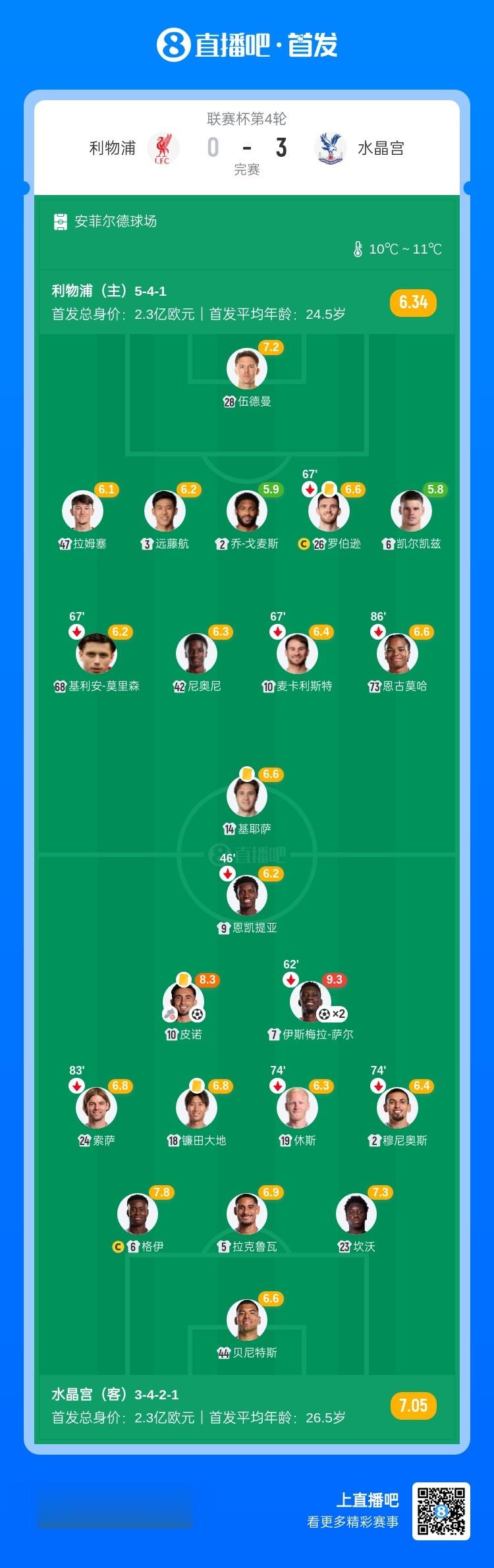 October 30th: Liverpool lost 0-3 at home to Crystal Palace and missed the quarterfinals of the League Cup. Head coach Slott said that people always focus on our transfer expenditure, but the team's lineup is not as strong as outsiders say. How to evaluate the team's performance? In the first half hour, I think we played to our ability. We had more chances in that half hour. But since the first goal was conceded, especially when the second goal was scored before half-time, I knew, and the entire audience should also know, that it was not easy to play against such a well-organized team. Except for the Community Shield where they scored two goals, in other games they scored at most one goal or no goals, usually just one goal. We have long been mentally prepared, especially when our team's running-in time is limited, it is even more difficult. It is a huge challenge for these young players. Do you regret hiring so many new people? Or is there no choice in tonight’s lineup? There are always choices, but in the last League Cup match against Southampton, Leoni was injured. Our lineup is not as strong as the outside world said. People always look at our transfer expenditure and think we have 25 people to rotate, but in fact there are only 20 main players and 4 injured. With the current schedule and intensive games next week, I only have one right back: Bradley. For example, last season, I played him 2 games in 3 days or 3 games in 7 days every time. In the end, he had to be replaced due to hamstring injury or other reasons. An important week is coming, will you take the risk? The last time I played a player who wasn't fully recovered, we thought Isaac was ready, but he got injured. Leoni was also injured against Southampton, and Ekitic received a red card. But there are always choices. For example, what if I sent Van Dijk and Konate today? If they get hurt people will say: 'What a stupid decision'. Even with all our main players, it was very difficult for us to defeat Crystal Palace. This was not the first time we lost to them.