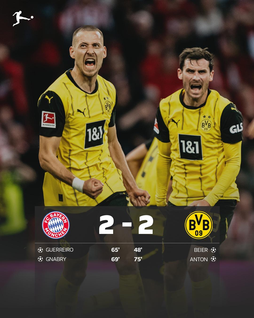 Hupu News on October 16th: The seventh round of the Bundesliga is about to usher in the German El Clasico, with Bayern playing against Dortmund at home. The Bundesliga official reviewed the past 10 national derbies to warm up the game. Bayern had the upper hand with 6 wins, 3 draws and 1 loss. 29th round of the 24/25 Bundesliga season: Bayern 2-2 Dortmund 12th round of the 24/25 Bundesliga season: Dortmund 1-1 Bayern 23/24 season Bundesliga round 27: Bayern 0-2 Dortmund Bundesliga 10th round of 23/24 season: Dortmund 0-4 Bayern Bundesliga round 26 of 22/23 season: Bayern 4-2 Dortmund The 9th round of the 22/23 Bundesliga season: Dortmund 2-2 Bayern The 31st round of the 21/22 Bundesliga season: Bayern 3-1 Dortmund 21/22 Bundesliga season Round 14: Dortmund 2-3 Bayern 20/21 Bundesliga season 24th round: Bayern 4-2 Dortmund 20/21 Bundesliga round 7: Dortmund 2-3 Bayern